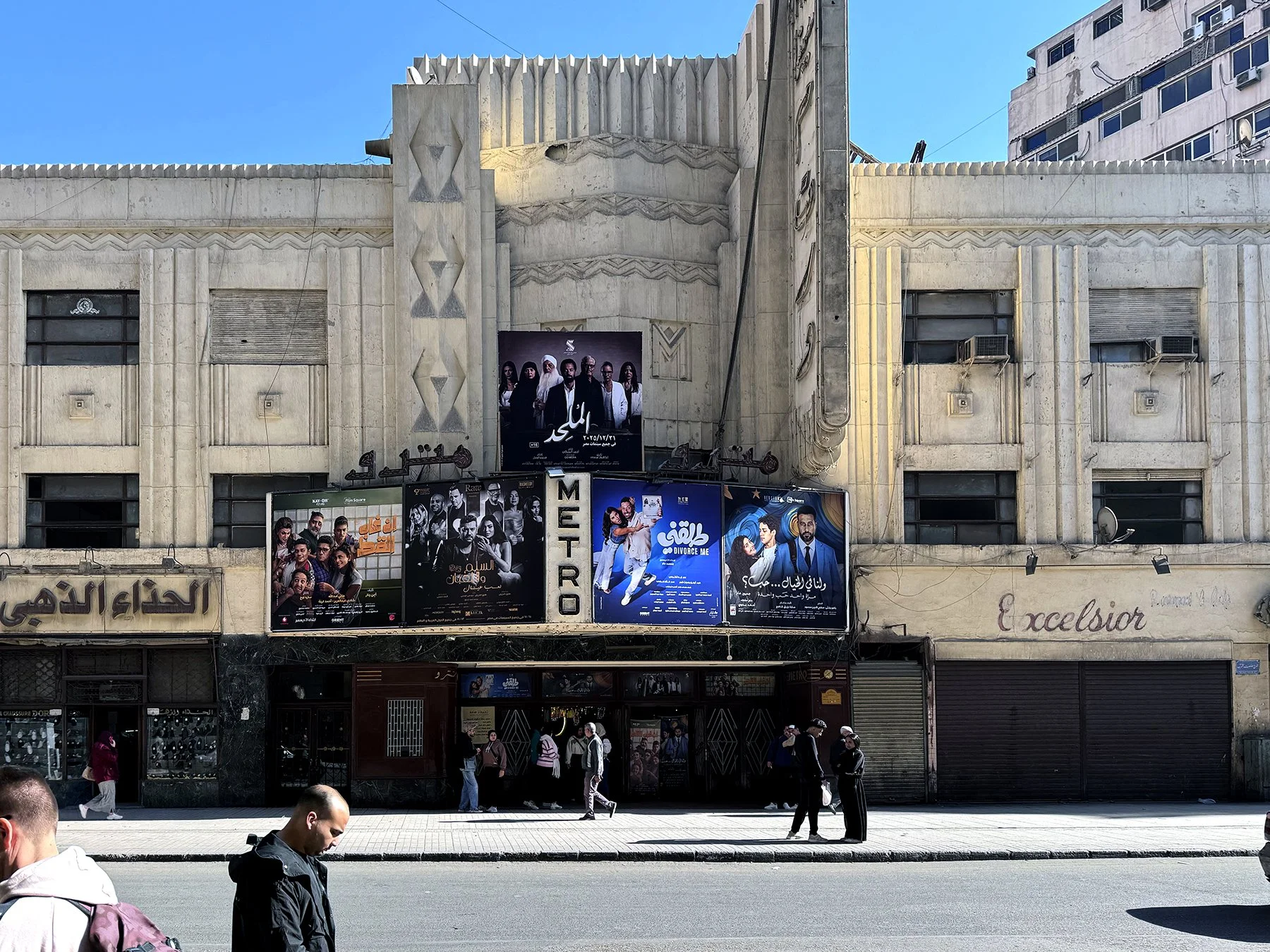لا تزال سينما راديو قائمًة، وإن لم تعد دار سينما. لفترة من الزمن، كانت استوديو تلفزيونيًا. صوّر باسم يوسف برنامجه "البرنامج" هناك قبل أن يحوّله المنفى إلى كوميدي عالمي وناقد سياسي بين الحين والآخر. يحمل المبنى آثار ذلك التمرد. الآن، يضم الممر المؤدي إليه مكتبة ديوان، ومقهى، ومتجرًا للهدايا التذكارية. دخلتُ المتجر بدافع الفضول. عُرضت الأشياء باحترامٍ أشبه بالمتاحف، وبأسعارٍ تتناسب مع ذلك. تفحّص زوجان يابانيان شابان مطبوعات البردي وحليًا نحاسية. للحظة، شعرتُ أنني في حي تراثي مُعدّ للتصدير، لا في وسط المدينة الصاخب الذي عشتُ فيه مراهقتي. في مكانٍ أبعد، احتفظت سينما ميامي بشيءٍ من هالة الغموض التي كانت تُحيط بها. ذات مرة، عندما كنتُ مراهقًا، كنتُ أتوقف لأتأمل معروضات الردهة: صور من أفلام مصرية، وممثلات يرتدين فساتين قصيرة من سبعينيات القرن الماضي، تحررٌ عابر مُؤطّر بالزجاج. لقد اختفى ذلك المشهد تحديدًا، لكن بقيت آثاره. على الجانب الآخر من الشارع تقع سينما مترو، الأكثر رقيًا، حيث شاهدتُ فيلم "الفك المفترس" وأنا صبي - خائفًا ومُبتهجًا - ولاحقًا فيلم "السق مات"، المقتبس من رواية يوسف السباعي الكئيبة. أُغلِقَ مقهى إكسلسيور، الذي كان مُلحقًا بالسينما، مؤسسة أخرى مُحيت دون أي مراسم. مكان آخر أُلقيَ في غياهب النسيان