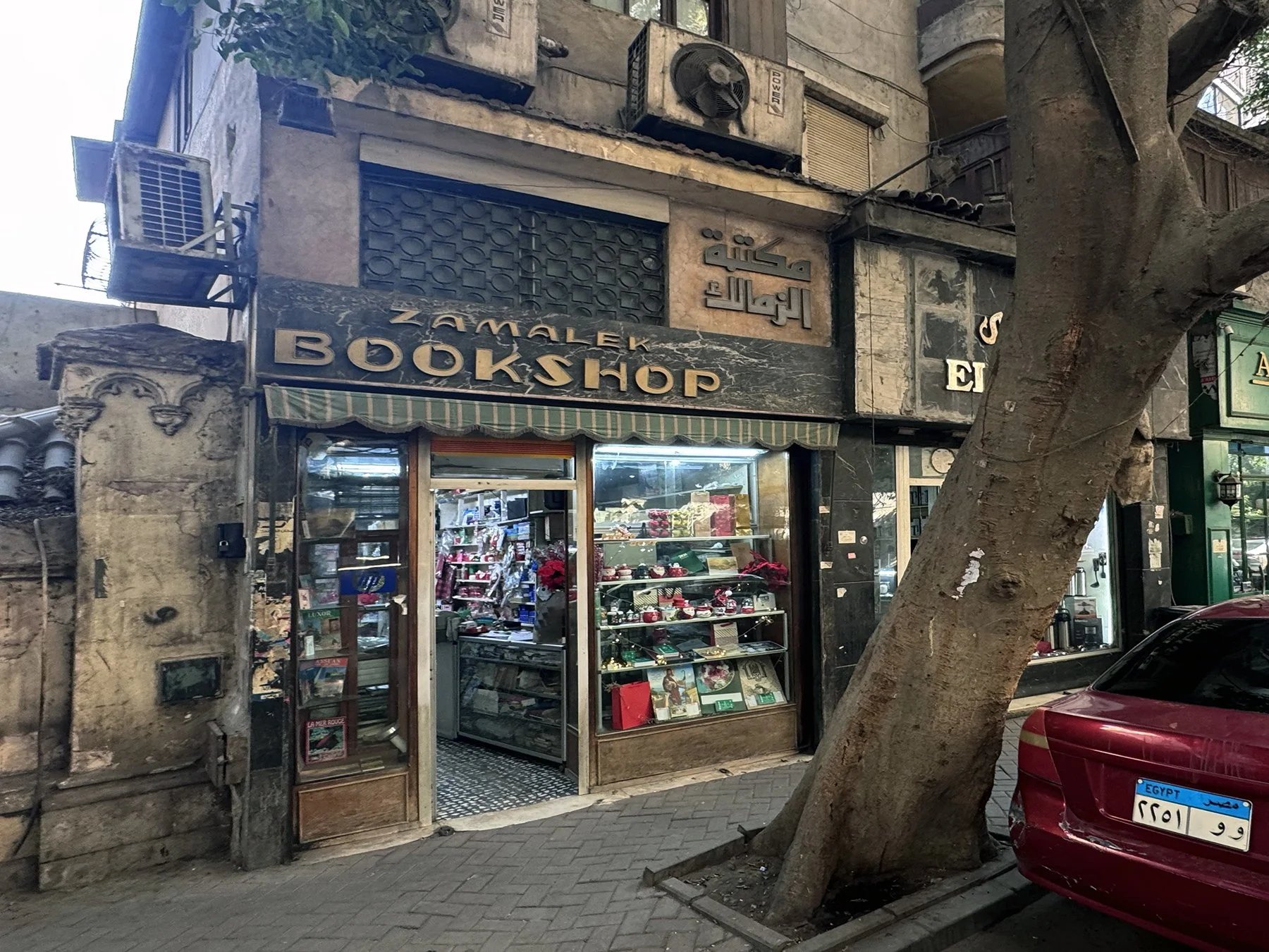 عدتُ أدراجي إلى بداية الشارع لأرى مبنانا القديم - لا بيرغولا. لا يزال قائمًا، محافظًا على طرازه المعماري الحديث. كان منزلنا الأول في القاهرة، ورؤيته مجددًا أشبه بلقاء جزء مني. من هناك، سلكتُ شارعًا جانبيًا عائدًا إلى شارع شجرة الدر، مارًا بمتجر مغلق - سكارابي - حيث كنا، كأطفال، نتجول داخله بينما كان صاحبه يروي لنا قصصًا عن ماضي القاهرة. لقد كان تعليمًا من نوع مختلف